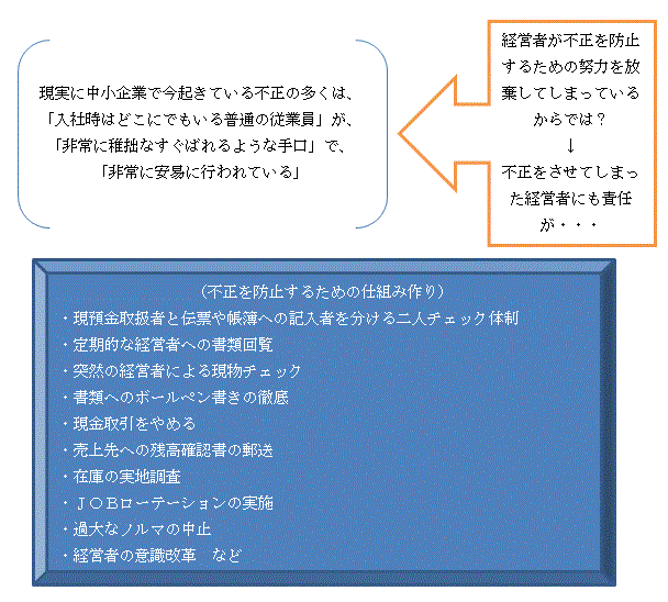 普通の人間を犯罪者に変身させてしまわないために、経営者にはぜひ不正を防止するための仕組み作りに力を注いでもらいたいです。